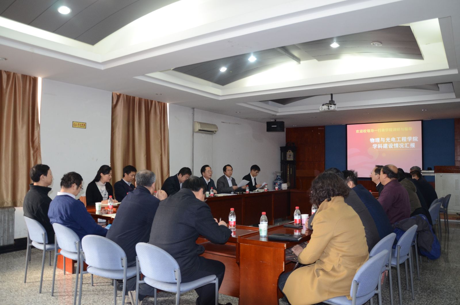 2015年1月13日,大连理工大学副校长曲景平在学科办全体同志的陪同下,来到乐动(中国)三楼会议室就争创一流大学学科建设工作进行调研。参加本次调研会议的有物理与光电工程学院党政班子主要成员、一级二级学科负责人、学术委员会主席、学位评定分委员会主席等以及数学科学学院相关领导及负责人。