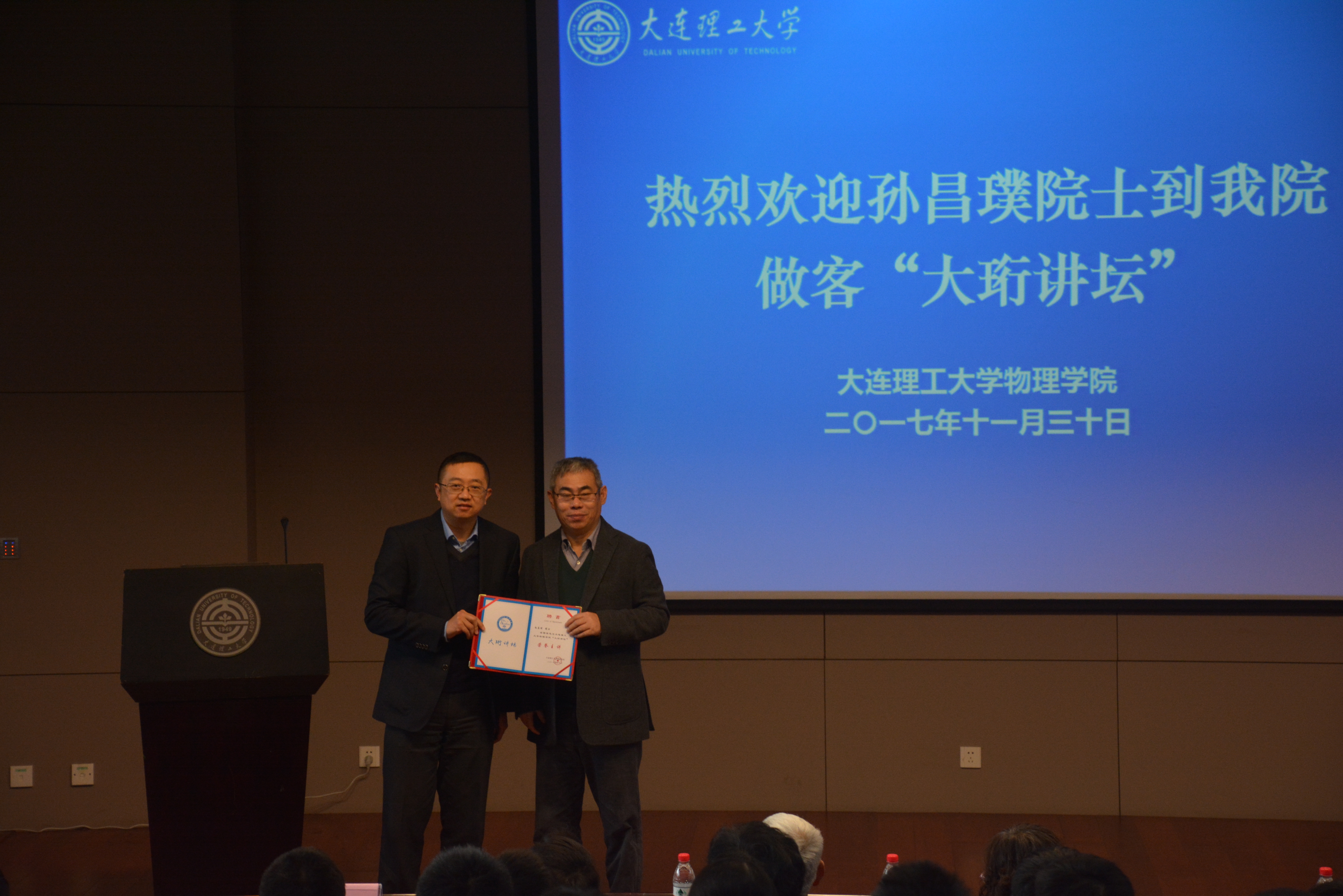 在讲座开始前,乐动(中国)赵纪军院长向孙昌璞院士颁发“大珩讲坛”荣誉主讲聘书。