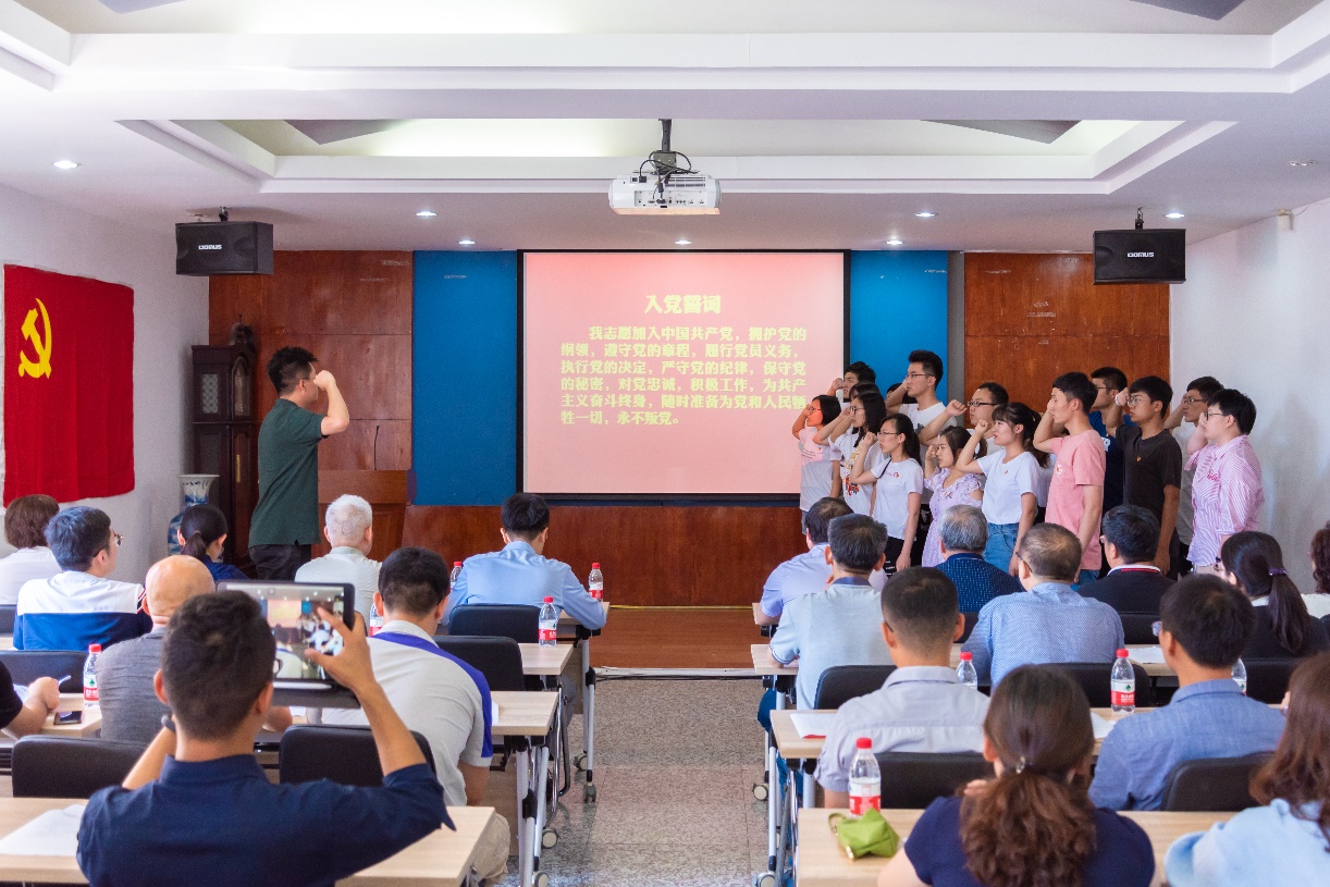 表彰会上,学院2019年上半年新发展的预备党员在全体到会师生的见证下完成入党宣誓。