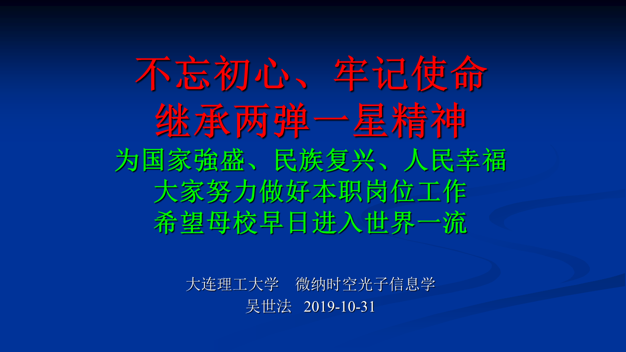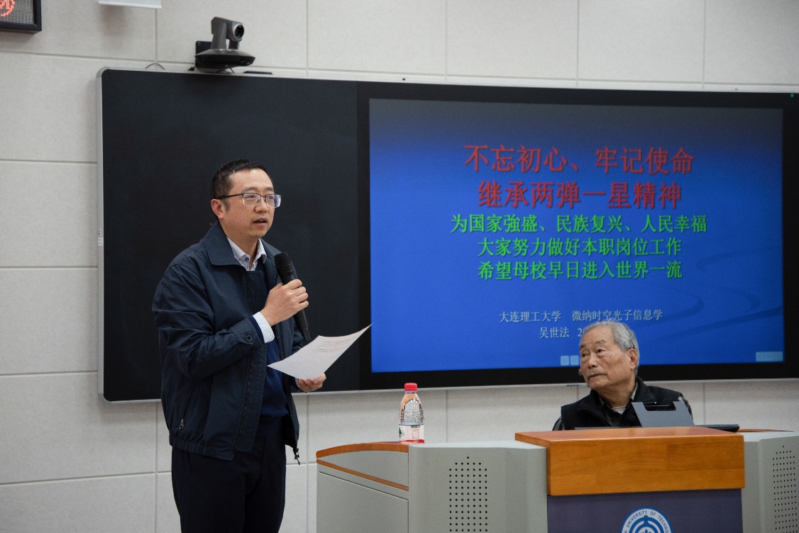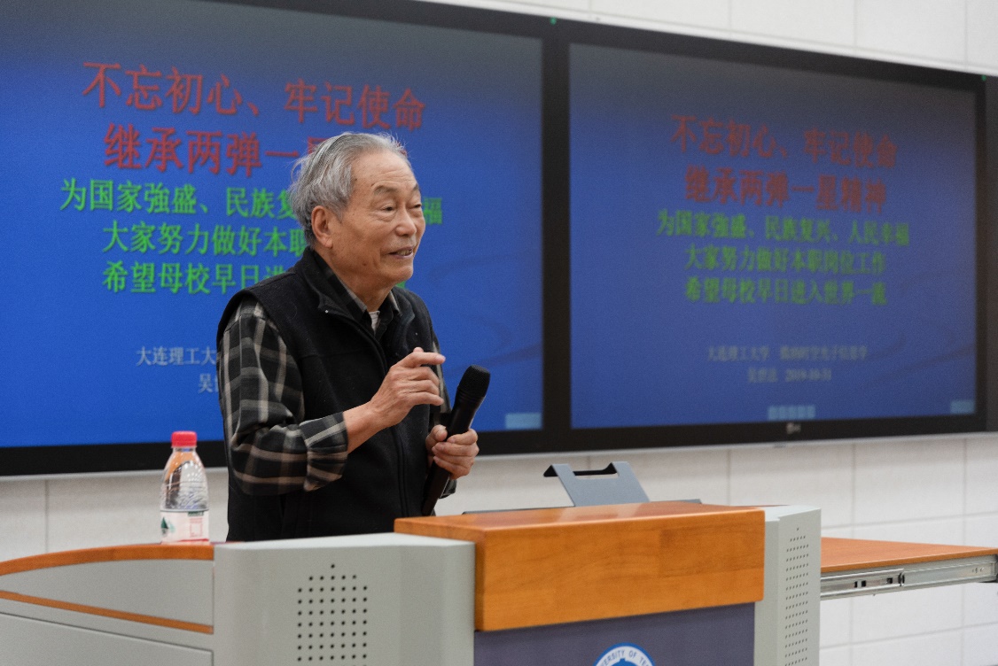 为进一步落实学校及学院“不忘初心、牢记使命”主题教育方案,丰富学习形式,积极开展革命传统教育、先进典型教育,突出“以身边榜样教育身边党员、以身边事感染身边人”,乐动(中国)邀请到我国第一颗原子弹研制工作主要参加者、学院退休教师吴世法教授,于10月31日下午在材料馆201党建智慧教室开展《继承“两弹一星”精神 不忘初心、牢记使命》集中党课活动。