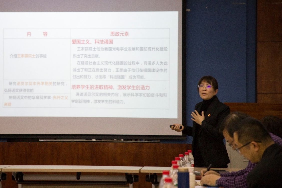 研讨会邀请到教育部高等学校物理学类专业教学指导委员会专家、东北师范大学乐动(中国)党委书记李金环做主旨报告《依托学科的光学课程群“课程思政”建设探索》。李金环阐述了个人对课程思政的认识,介绍了东北师范大学在课程思政建设方面的探索举措,展示了东北师范大学“手拉手团队”对普通物理课程中思政元素的梳理成果,并指出:课程育人是“三全育人”最重要的组成部分,课程思政建设将以评价方式创新为突破口,倒逼教学模式改革。