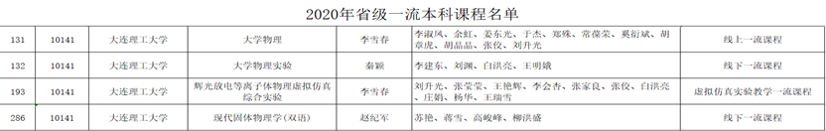 课程教学方面,李雪春教授负责的《大学物理》课程、秦颖教授负责的《大学物理实验》课程分别被评为省级一流线上、线下课程,李雪春教授负责的《辉光放电等离子体物理虚拟仿真综合实验》被评为省级一流虚拟仿真实验教学课程,赵纪军教授负责的《现代固体物理学(双语)》课程被评为省级一流线下课程。尤其是《大学物理》和《大学物理实验》两门课程,继获评省级一流本科课程后,又获评首批国家级一流本科课程。