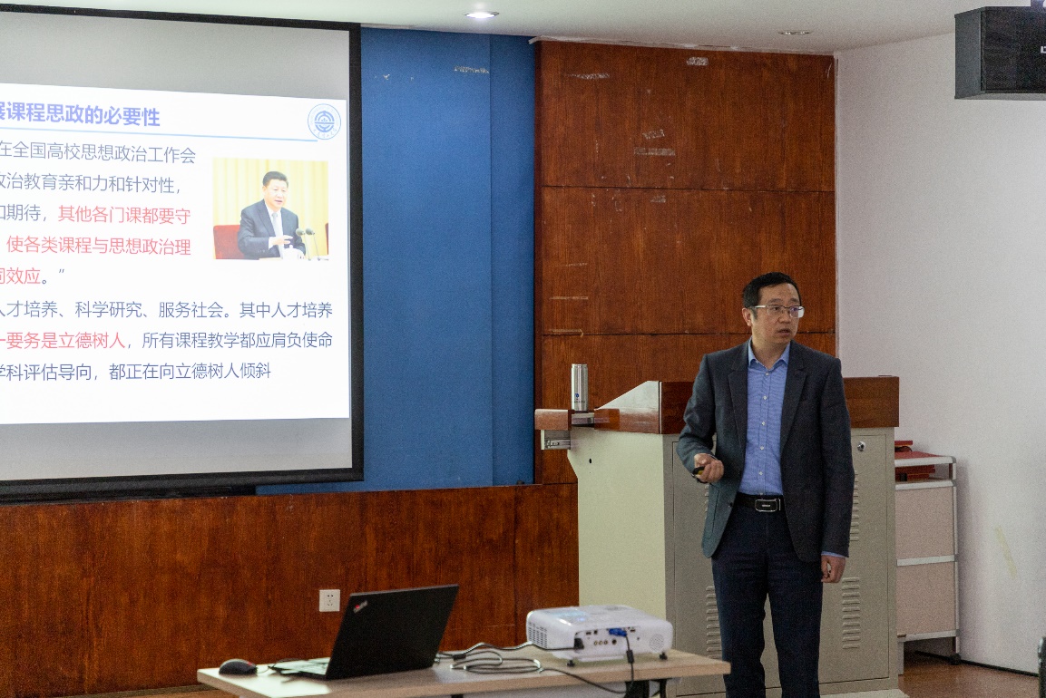 会议邀请学院院长赵纪军做《物理学“课程思政”经验交流》专题报告。赵纪军从开展“课程思政”的必要性,物理学科“课程思政”的几个思路,辩证唯物主义与物理学,坚定“四个自信”——从大国重器到中国科学家的科研贡献等方面,同与会师生深入交流在物理学科视域下开展“课程思政”工作的经验与要点。
