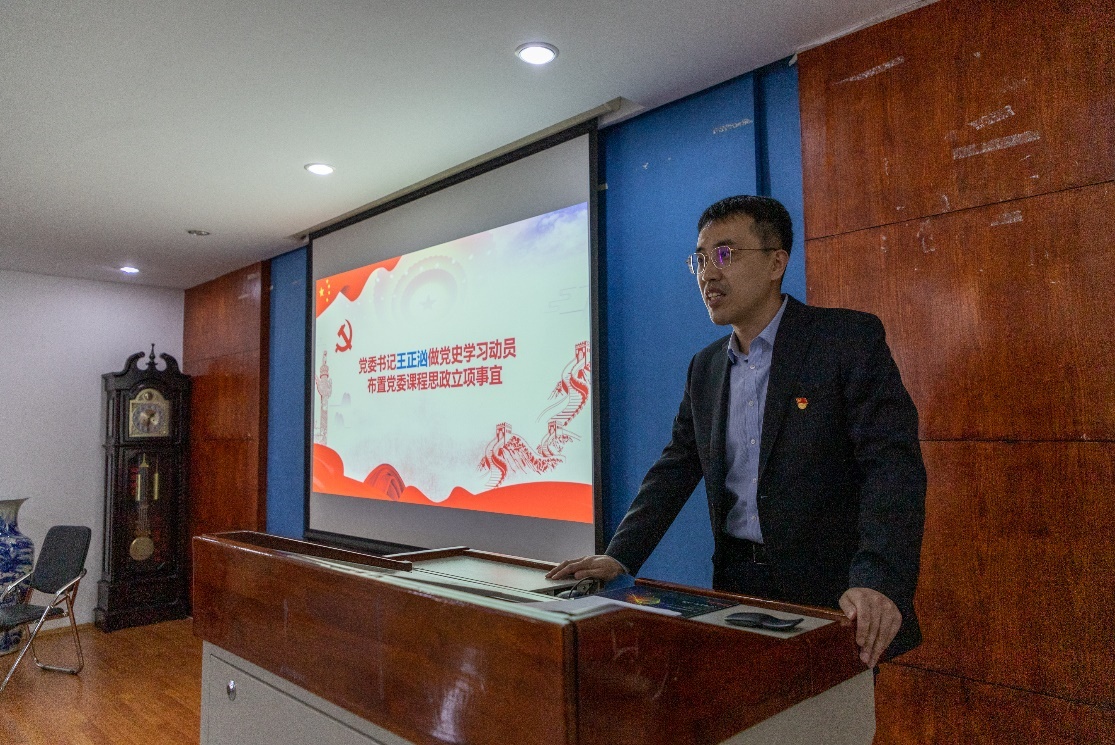 会议首先由学院党委书记王正汹做党史学习教育动员讲话。他强调,在建党100周年之际,学院上下要通过加强党史学习教育,满怀信心迈进新征程,为学院事业发展汇聚力量;开展期间要不断提高认识、突出学院特色、营造良好氛围。王正汹同时宣布启动学院级“课程思政”研究立项工作,对立项申请等事宜进行介绍,表示此举旨在结合党史学习教育契机,进一步助力任课教师积累“课程思政”的理论与实践经验。
