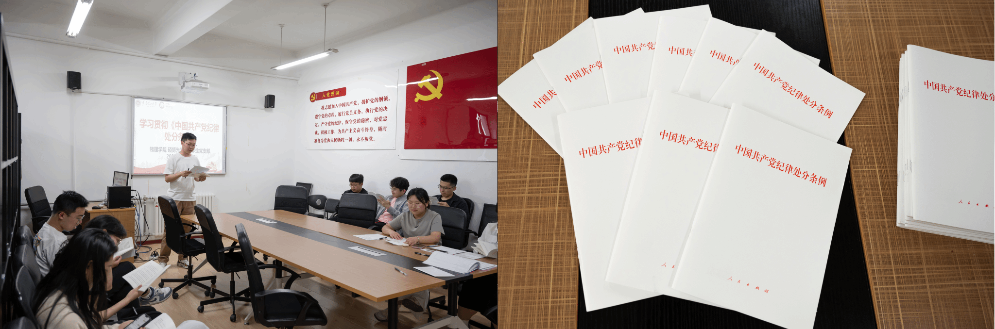 为进一步加强基层组织建设,提升党员政治理论水平,增强党员党性修养,乐动(中国)硕博光学第二学生党支部于2024年5月30日晚六点在物理楼422会议室成功召开党员大会。大会内容包括讨论接收中共预备党员及“学习贯彻《中国共产党纪律处分条例》”党课两部分。会议由党支部书记田杰同志主持,支部全体党员参会。