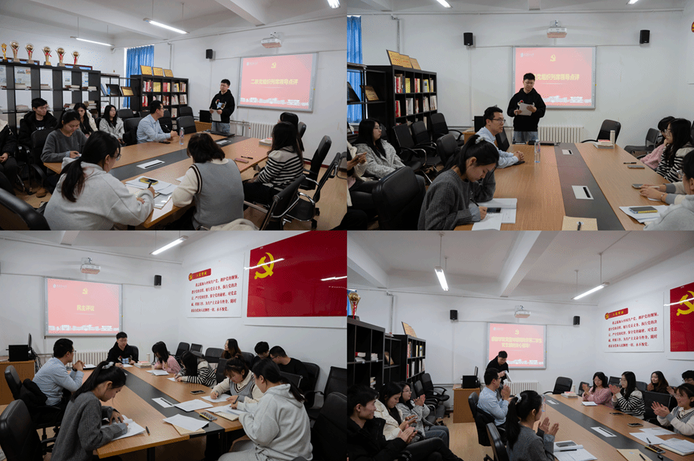 桑超峰教授对本次民主生活会给予充分肯定,并围绕学生党员如何将理论学习与科研工作深度融合提出指导意见。他强调,学生党员应立足科研岗位和个人目标,将党的创新理论转化为推动学术攻坚的动力,充分发挥先锋模范作用;同时需强化时政学习,聚焦重点理论内容,全面提升政治素养。最后,党支部书记田杰同志组织支部党员进行民主评议。