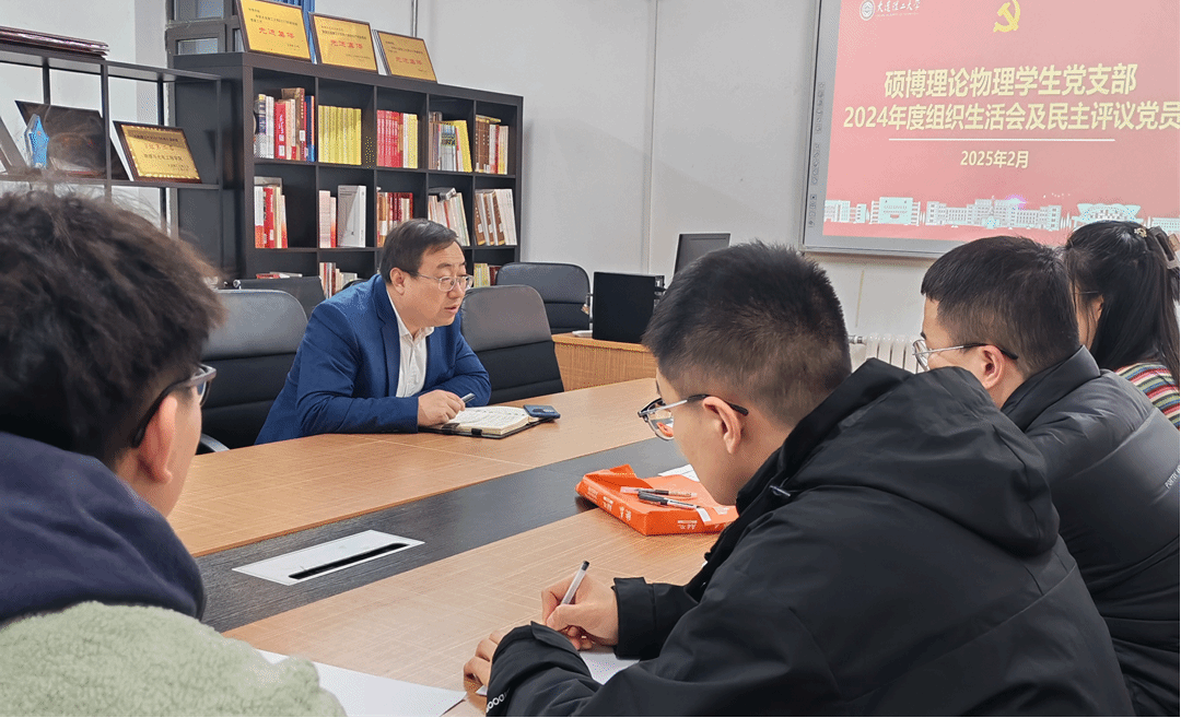 为深入学习贯彻党的路线方针政策,加强党组织建设,进一步推动全体党员的思想觉悟与行动相统一,乐动(中国)硕博理论物理学生党支部于2月27日晚在物理楼422室召开了2024年度组织生活会暨民主评议党员大会,本次会议通过批评与自我批评、领导点评等环节,全面推动思想建党与制度治党同向发力。本次会议由支部书记韩钰芬同志主持,学院党委书记于长水教授莅临指导,支部全体党员参会。