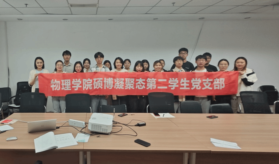 为积极落实深入贯彻中央八项规定精神学习教育,强化党员政治素养、夯实党组织建设,乐动(中国)硕博凝聚态第二学生党支部于2025年5月28日晚在科技园C座510会议室召开以“学党纪、强党性、促担当”为主题的党员大会。本次会议由党支部书记杨秋萍同志主持,党支部全体党员参会,会议还特邀学院团委组织部副部长王一杭同学以及学院优秀团课作品团队做主题宣讲。