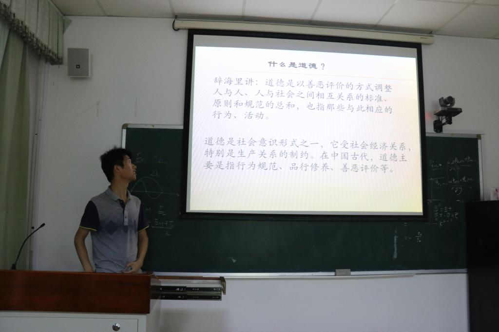 首先,老党员何缔同志深入剖析了什么是道德,身为共产党员应该具备怎样的道德修养。他认为中国共产党人的道德修养继承了中国传统文化和传统道德体系,同时也与时俱进。接下来,张冬梅同志则从中国传统道德“四维五常”入手,结合胡锦涛同志的“八荣八耻”,引经据典,详细阐述了中国传统传统美德的发展与流传,引起了大家对于我国传统文化内涵的深入讨论。最后,丁倩倩同志就“讲道德,有品行”的时代意义以及如何做到“讲道德,有品行”作了深入阐述。强调了“四讲四有”关键在做,并非空喊口号。