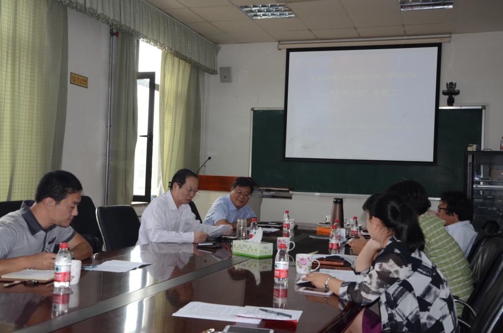 为继续深入学习贯彻习近平总书记系列重要讲话精神,紧紧围绕协调推进“四个全面”战略布局,按照学校党委工作部署,结合学院党政班子建设实际,9月25日上午9点,物理与光电工程学院在院楼425会议室,以“严以律己,严守党的政治纪律和政治规矩,自觉做政治上的‘明白人’”为主题,组织开展了“三严三实”专题教育专题二的集中学习研讨。物理与光电工程学院党政领导班子成员全员参加学习研讨,学校党委组织部副部长孙刘劼出席了会议。