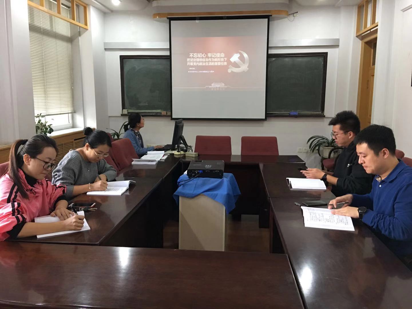 为深入学习贯彻习近平新时代中国特色社会主义思想,推动学校“不忘初心、牢记使命”主题教育,进一步加强党员队伍的思想建设,新形势下坚定党员理想信念,10月23日上午10:00机关教工-本科生联合党支部按照学院党委的工作部署开展“不忘初心、牢记使命”主题党日活动,教工党员在三束1号楼会议室由党支部书记进行“把坚定理想信念作为新形势下开展党内政治生活的首要任务”的党课学习,并且进行了复旦大学中国研究院副院长范勇鹏研究员的视频课程学习,视频内容为《美国怎么玩民主》的合集。