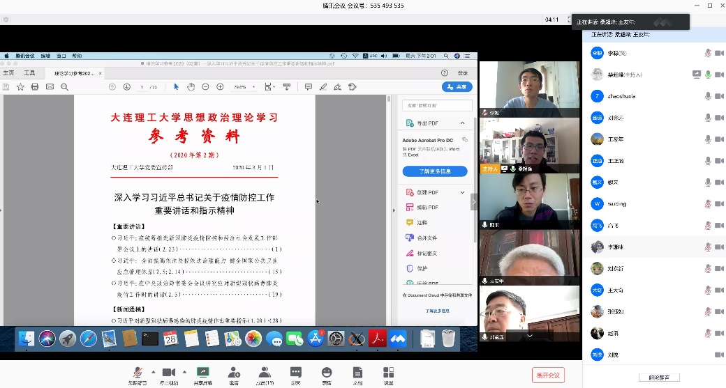 最后,支部同志针对疫情期间教学、科研工作的开展等情况进行了积极发言和讨论。对在线教学遇到的困难和积累的经验进行了交流,对学生在家学习积极性不高的问题提出了各自的看法和建议。针对受疫情影响较大的科研工作,王友年同志号召全体教工在做好防护的前提下,克服困难、坚持有序恢复开展科研工作。高飞同志建议在疫情期间,认真准备基金申报材料,充分打磨,提高申请书质量。针对在学生疫情期间可能产生的负面情绪,王正汹同志指出要多与学生在线交流,掌握学生心理变化,及时疏导焦虑情绪。会议还对本专业在境外学习的研究生的学习生活情况进行介绍,了解学习生活中的困难,并及时协助解决。尽管突如其来的疫情对各位老师的教学科研工作等方面提出了新的挑战,但各位党员同志充分发扬了勇于担当、主动作为的精神,积极应对各种困难,通过组织生活会的深入交流,大家更加增强了克服困难的方法和坚定了战胜困难的信心。有党中央的坚强领导,有中国特色社会主义制度的显著优势,有强大的动员能力和雄厚的综合实力,有全党全军全国各族人民的团结奋斗,我们一定能够战胜这场疫情!