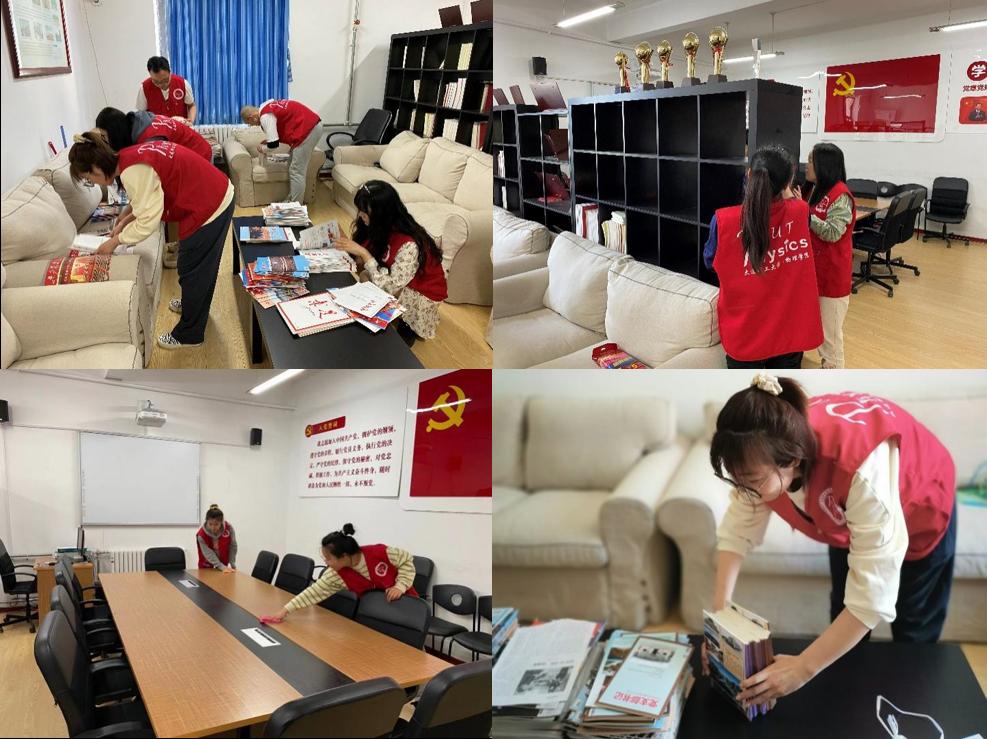 尽管课业和科研任务繁忙,但各位同学对于此次活动表现出了极大的兴趣和工作热情,保质保量地完成了清扫工作任务。经过打扫后的会议室桌椅摆放整齐,地上无纸屑,屋内无垃圾,图书摆放有序。在此基础上,志愿者们还对422党员活动室的党建图书进行了登记整理,服务广大师生党史学习需要。