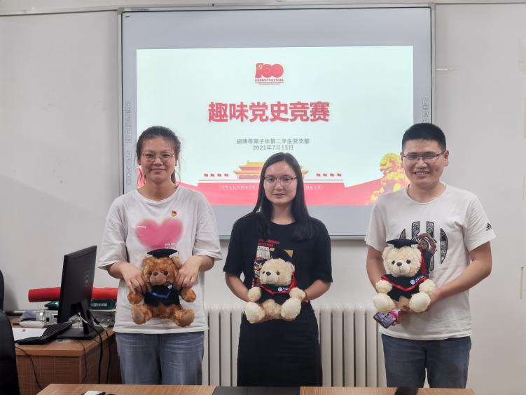此次趣味党史竞赛形式新颖、喜闻乐见,通过比赛实践检验自己的学习成果,将趣味性和学习性相结合,不仅增加了党员之间的沟通交流、提升了党支部的凝聚力,还强化了青年党员对党的向心力和学习党史的自觉性。接下来,硕博等离子体第二学生党支部将进一步转化党史学习教育成果,广泛开展形式新颖、立意深远、内涵丰富的党史学习教育,激发支部党员传承红色基因的自觉性,永做信念坚定、敢于担当的先进模范,用实际行动礼赞党的百年华诞。