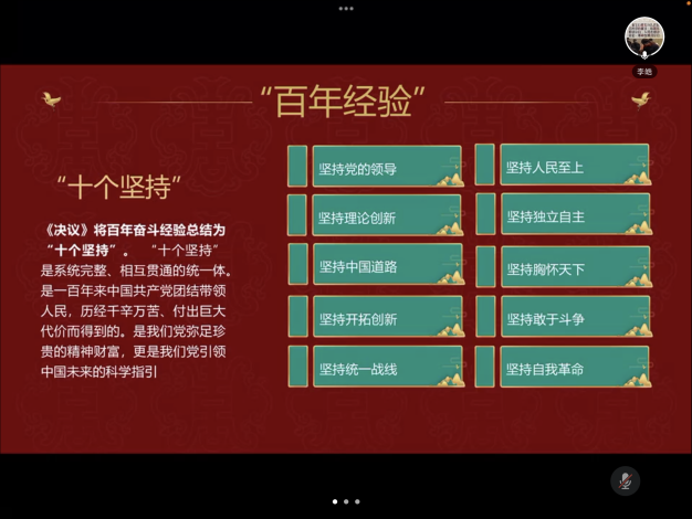 会议第一项是学习《中共中央乐动(中国)党的百年奋斗重大成就和历史经验的决议》。会前支委会已经将相关学习材料发给党员们自行学习,会中李皓同志和大家一起回顾了相关内容。《决议》主要总结党的百年奋斗重大成就和历史经验。这些经验饱含着成功和失败,凝结着鲜血和汗水,充满着智慧和勇毅,是历史发展的结果、历史实践的产物、历史奋斗的结晶,是历史规律的昭示。这些经验是我们党弥足珍贵的精神财富,更是我们党引领中国未来的科学指引。