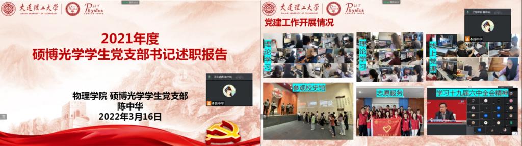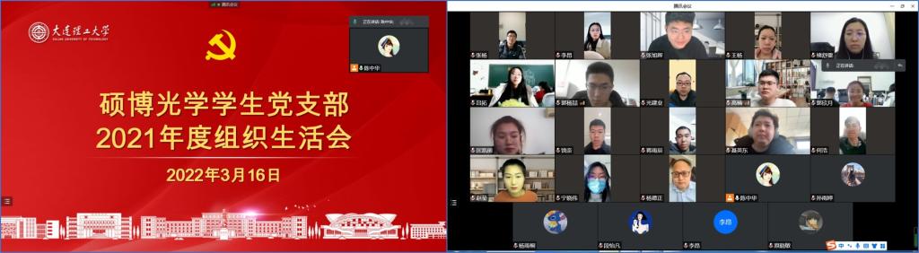 按照大连理工大学党委和乐动(中国)党委的统一部署,结合学校疫情防控相关要求,乐动(中国)硕博光学学生党支部于2022年3月16日下午,通过腾讯会议线上召开2021年度组织生活会。会议由支部书记陈中华同志主持,全体党员参加,乐动(中国)副院长杨德正教授列席指导。