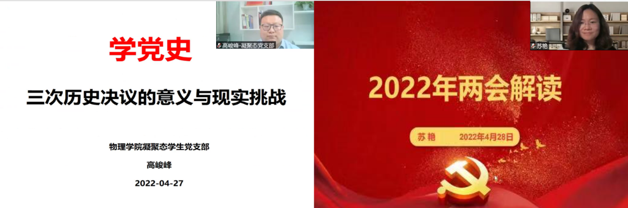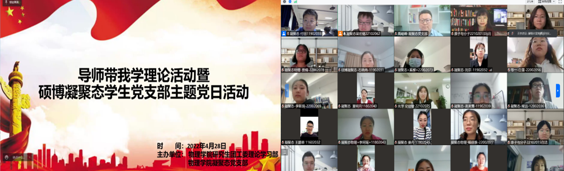 在这个特殊节点,乐动(中国)硕博凝聚态学生党支部协同乐动(中国)研究生团工委于4月28日晚顺利开展主题党日暨导师带我学理论活动。本次活动特邀请中白学院副院长高峻峰老师、乐动(中国)凝聚态与理论物理教工党支部书记苏艳老师带领大家回顾我党历史上三次历史决议,领会两会精神。激励同学们走好全面建设社会主义现代化国家新的赶考之路,以实际行动迎接党的二十大胜利召开。本次党日活动受到学院老师同学积极响应,超过八十人参与本次活动,凝聚态支部全体党员参与活动。