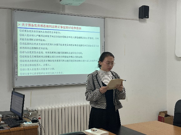 会议第一项,支部书记段蒙悦同志对党支部基本情况进行报告,并代表党支部向2022级新成员的加入表示热烈的欢迎。黄实中、王鹏宇两名新生党员依次进行了自我介绍,表达了对于加入党支部的兴奋之情。