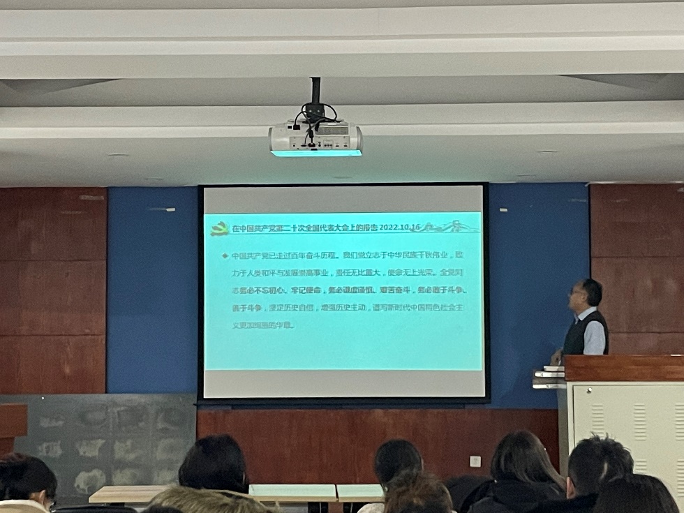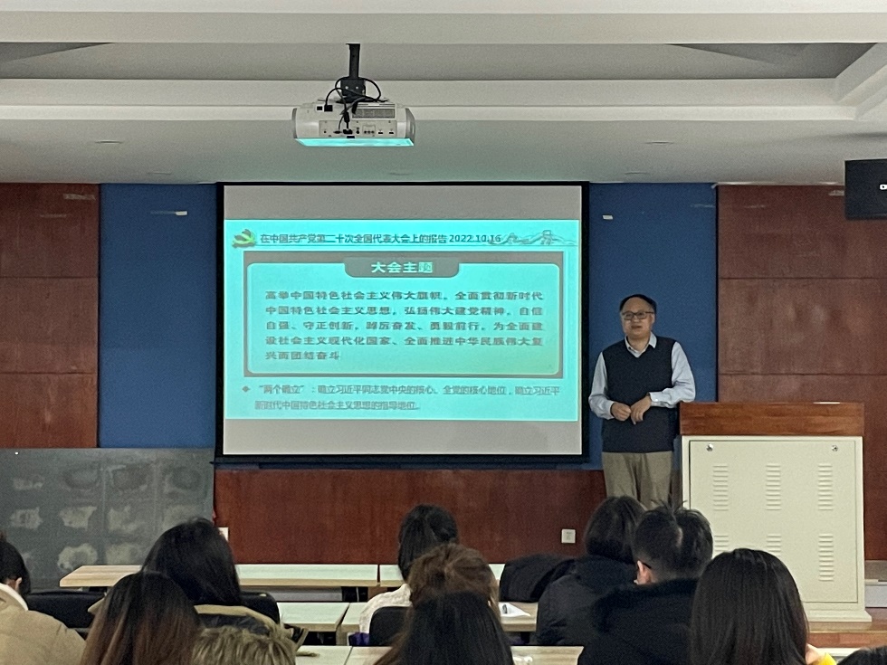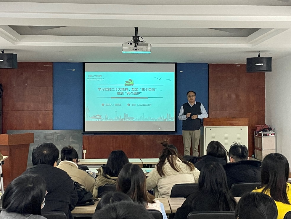 中国共产党第二十次全国代表大会于10月16日至22日在北京举行。为深入学习宣传贯彻党的二十大精神,按照学院党委部署,硕博等离子体第一学生党支部于2022年12月6日19:00在乐动(中国)322会议室举行主题党日活动,特邀乐动(中国)副院长杨德正老师为支部讲授《学习党的二十大精神,坚定“四个自信”、做到“两个维护”》的主题党课。本次主题党课的参与人员为全体党员同志、支部发展对象和入党积极分子。