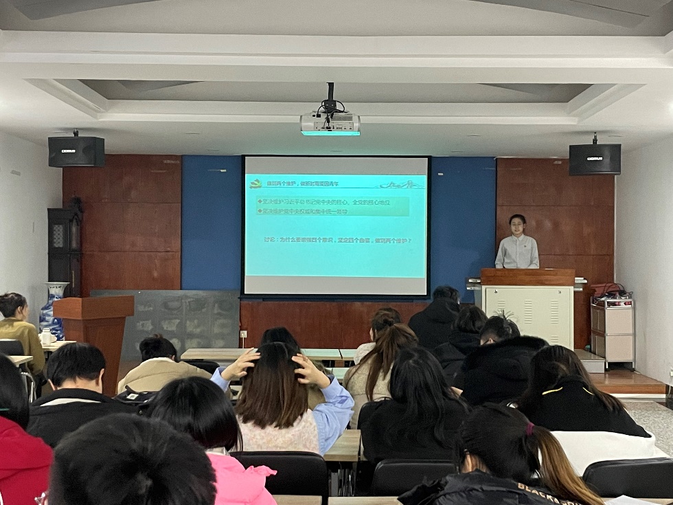 最后,杨德正老师提出我们要做到“两个维护”,做新时期爱国青年。坚决维护习近平总书记党中央的核心、全党的核心地位,坚决维护党中央权威和集中统一领导。杨老师指出,“两个维护”具有重要的意义,是对我们党历史经验的科学总结,是党和国家前途命运所系,是全国各族人民根本利益所在,是最根本的政治纪律和政治规矩。在中国特色社会主义新时代,只有把“两个维护”作为党的政治建设的首要任务,坚决维护习近平总书记党中央的核心、全党的核心地位,坚决维护党中央权威和集中统一领导,才能形成万众一心的磅礴力量,才能应对国内外各种风险和考验,不断夺取中国特色社会主义事业新胜利。