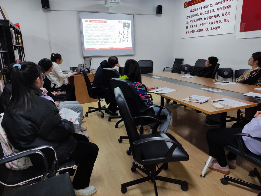 会议的第一项,由周楠楠同志与刘津伊同志带领全体党员进行主题党课学习。首先由周楠楠同志分享“深入学习二十大,青春践行二十大”主题党课。在党的二十大报告中,习近平总书记强调,当代中国青年生逢其时,施展才干的舞台无比广阔,实现梦想的前景无比光明。青春无边,奋斗以成。作为当代中国青年,生逢其时,要牢记习近平总书记的殷切寄语,珍惜当下时光,不负青春韶华,踔厉奋发、勇毅前行,让青春绽放更为绚丽的光芒。