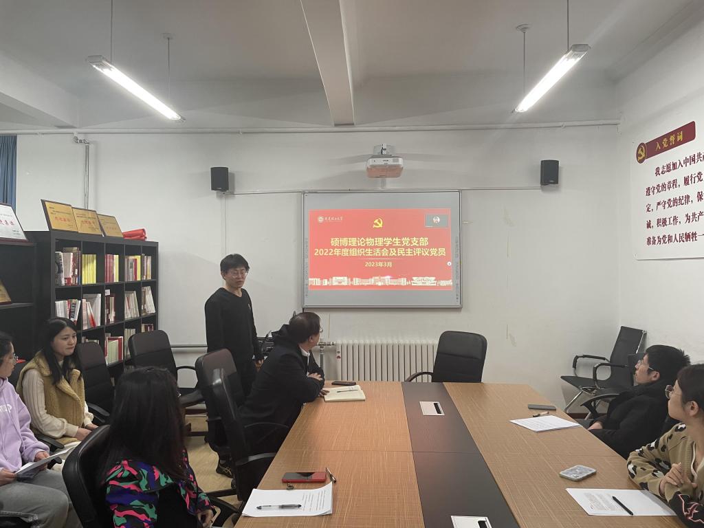 根据学校党委《乐动(中国)召开2022年度基层党组织组织生活会和开展民主评议党员的通知》和学院党委的部署安排,支委会为更好开展组织生活会和民主评议党员相关工作进行精心准备,会前,支部围绕《学习党的二十大精神,正确理解中国式现代化》的主题党课教育,为开展好组织生活打下思想基础。硕博理论物理学生党支部2022年度组织生活会和民主评议党员于2023年3月2日晚7点在422会议室采取线上与线下相结合的方式进行开展。本次会议的主要内容有两部分,党课集中学习与组织生活会和民主评议党员。其中,集中学习围绕深入贯彻党的二十大精神和毛泽东同志“向雷锋同志学习”题词发表六十周年来开展。本次会议由支部书记刘玉强同志主持,乐动(中国)副院长于长水同志出席会议,支部全体党员参加。