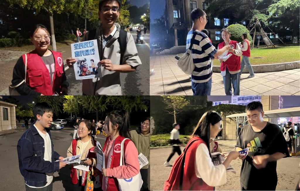 会议第三项,与会党员同志积极响应支部号召“我们不仅要塌心学理论,还要将理论与实践结合,充分发挥党先锋模范作用,在推动高质量发展、维护社会稳定、联系服务群众中挑重担、当先锋、打头阵,以模范行为为党旗争光添彩。”为此,为进一步开展“我为师生做实事“并落实反电信诈骗宣传,切实维护在校学生财产安全,我们秉持着“走出去,多做事,做实事” 的原则将全体党员分为两组开展“反诈宣传”志愿活动。党员同志们向校内的同学发放印有反诈知识的宣传页,并重点宣传各类与学生日常密切相关的安全防范知识,提醒大家不要轻信陌生人的电话与短信,引导大家辨识骗局,提高防范意识。