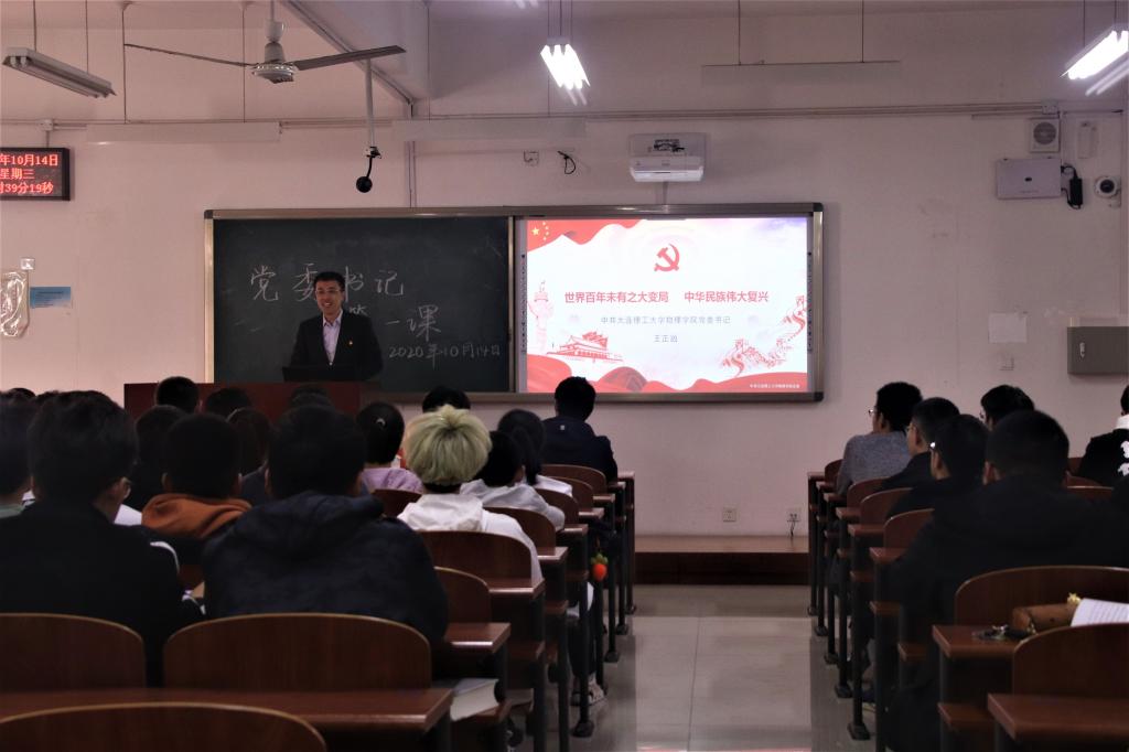 为传承红色基因,使2020级新生牢记初心,不忘使命,勇担时代重任,傲立改革潮头。10月14日下午15:30综合教学2号楼A201,党委书记王正汹教授为2020级新生上一堂别开生面的“党委书记第一课”,本次活动的主题为“百年未有之大变局,中华民族伟大复兴”。