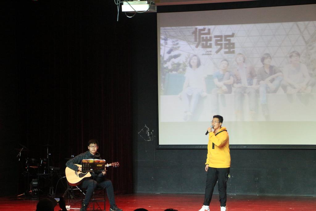 不同于第一首歌曲的动感,由2020级新生李汶阔、葛浩威带来的歌曲《倔强》让同学们陷入沉思。