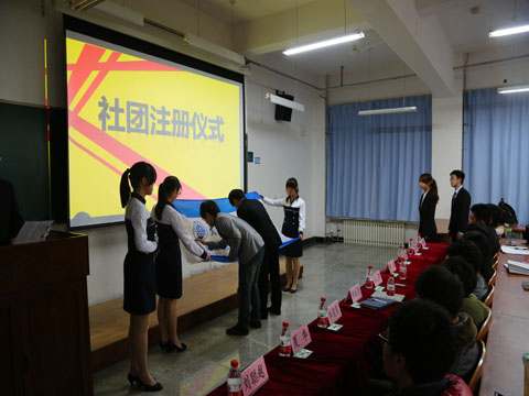 随着开场视频的结束,主持人宣布大会正式开始。首先,由佟西原老师为大会致辞,佟老师与到场的同学们分享了自己作为指导老师的感受。接下来,乐莺乐团,篮球队,足球队,演讲协会,羽毛球队,排球队,礼仪队,健美操队辩论队,合唱队,啦啦操队,乒乓球队的负责人们依次登台进行团队的展示。各社团负责人向大家展示了各社团的历史及成就,社团的宗旨和特色,介绍了社团的成员,训练情况,社团发展规划等。其间,啦啦操队的队员们还进行了啦啦操的表演。在各社团展示完毕后,各社团代表上台,在物理与光电工程学院社团联合会会旗上签字,完成了正式注册。